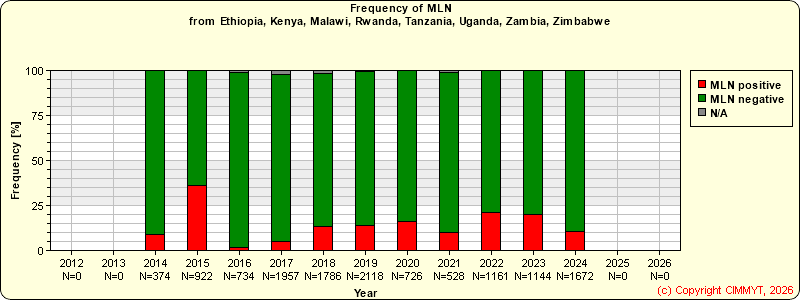 Data provided by: DARS, Malawi. ZARI/PQPS, Zambia. DRSS (Agritex, PPRI, PQS, PSQI, SSI), Zimbabwe. KEPHIS, Kenya. NARO, Uganda. RAB, Rwanda. EIAR, Ethiopia. PHS/TARI/MARI, Tanzania. IITA.
